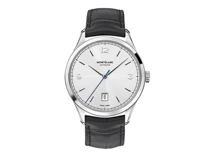 Montblanc Heritage Chronométrie, Automatik, Kaliber MB 24.09 , Datumsanzeige bei 3 Uhr, Edelstahl, Durchmesser 40 mm, silberweißes Zifferblatt mit rhodinierten Indizes, schwarzes Alligatorlederband, Dornschließe, entspiegeltes Saphirglas, Glasboden, 3 bar wasserdicht