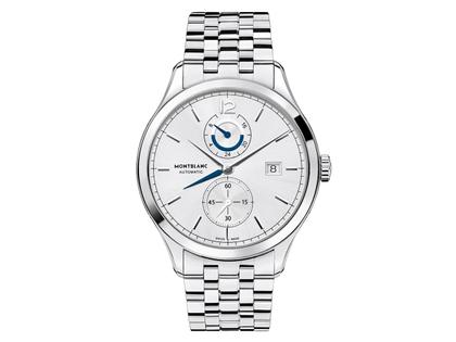Montblanc Heritage Chronometrie Dual Time Automatik Edelstahl silber-blau Metallband