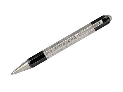 Kugelschreiber Egyptomania Doue, Zylinder aus Metall mit achteckiger Form Palladium beschichtet, Edelharz schwarz, antike palladiumbeschichtete Beschläge