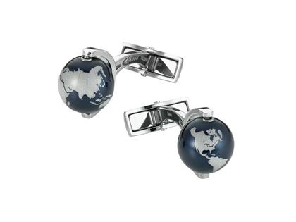 Montblanc Men´s Jewellery, Manschettenknöpfe aus poliertem Edelstahl, rotierende Weltkugeln it blauem Lack