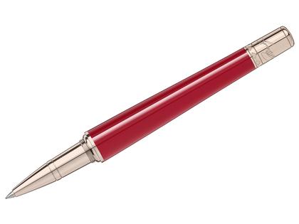 Jedes Detail des Rollerballs erinnert an die Filmgöttin. Die Form des Schreibgeräts ist von den 10 cm hohen Absätzen inspiriert, die Farbe von Kappe und Korpus erinnert an ihren roten Lippenstift und eine diamantförmige Gravur der Unterschrift vollenden das edle Bild dieses Schreibgerätes.