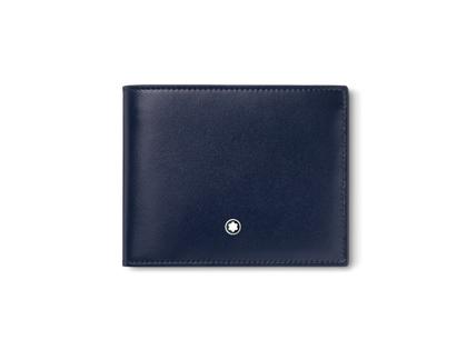 Brieftasche aus tintenblauem Kalbsleder, Montblanc Emblem mit palladiniertem Ring, 6 Kreditkartenfächer, 1 Geldscheinfach, Maße 11,5 x 1,0 x 9,0 cm