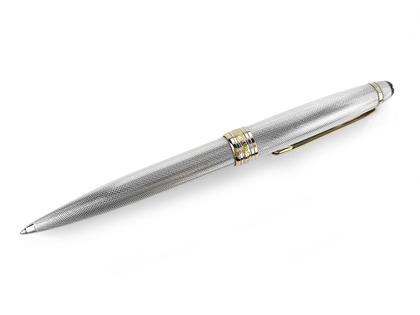 Kugelschreiber aus Sterlingsilber, Clip und Beschläge vergoldet, Korpus und Kappe guillochiert
