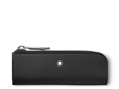 schwarzes vollnarbiges Leder, tiefglänzendes Montblanc schwarz, durchgefärbt, Montblanc Emblem mit palladiniertem Ring, Reißverschluss, für 1 Stift aus der „Heritage Rouge et Noir Baby Collection“