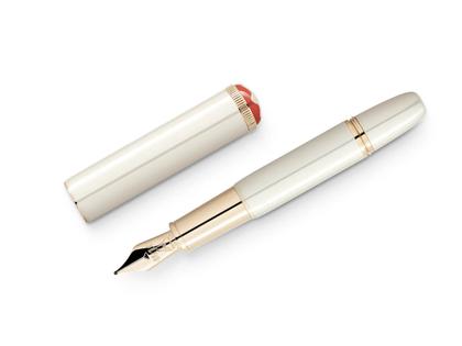 Korpus aus elfenbeinfarbenem Edellack, Kappe aus elfenbeinfarbenem Edellack mit Montblanc Stern aus koralle- und elfenbeinfarbigen Edelharz, 14 Karat Goldfeder (585/-), Federbreite M