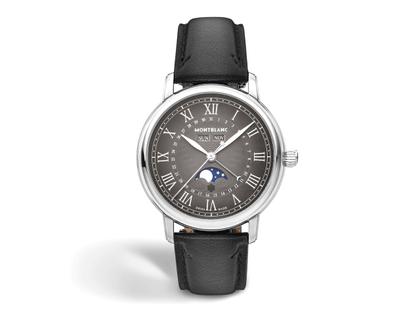 Montblanc Star Legacy Full Calendar Edelstahl 42mm graues Zifferblatt graues Lederband