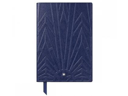 Notebook #163 mittelgroß, Meisterstück The Origin Collection, Blau, liniert. Das Art déco Muster, das auf dem Schreibgerät zu finden ist, ziert als Prägung die Vorderseite. In Italien gefertigt. 120 Blätter / 240 Seiten. Maße: 170 x 240 mm.