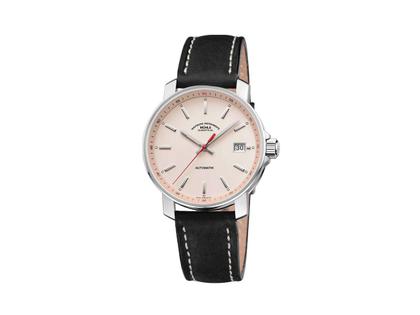 Mühle Glashütte 29er Automatik Edelstahl 36mm apricotfarbenes Zifferblatt schwarzes Lederband