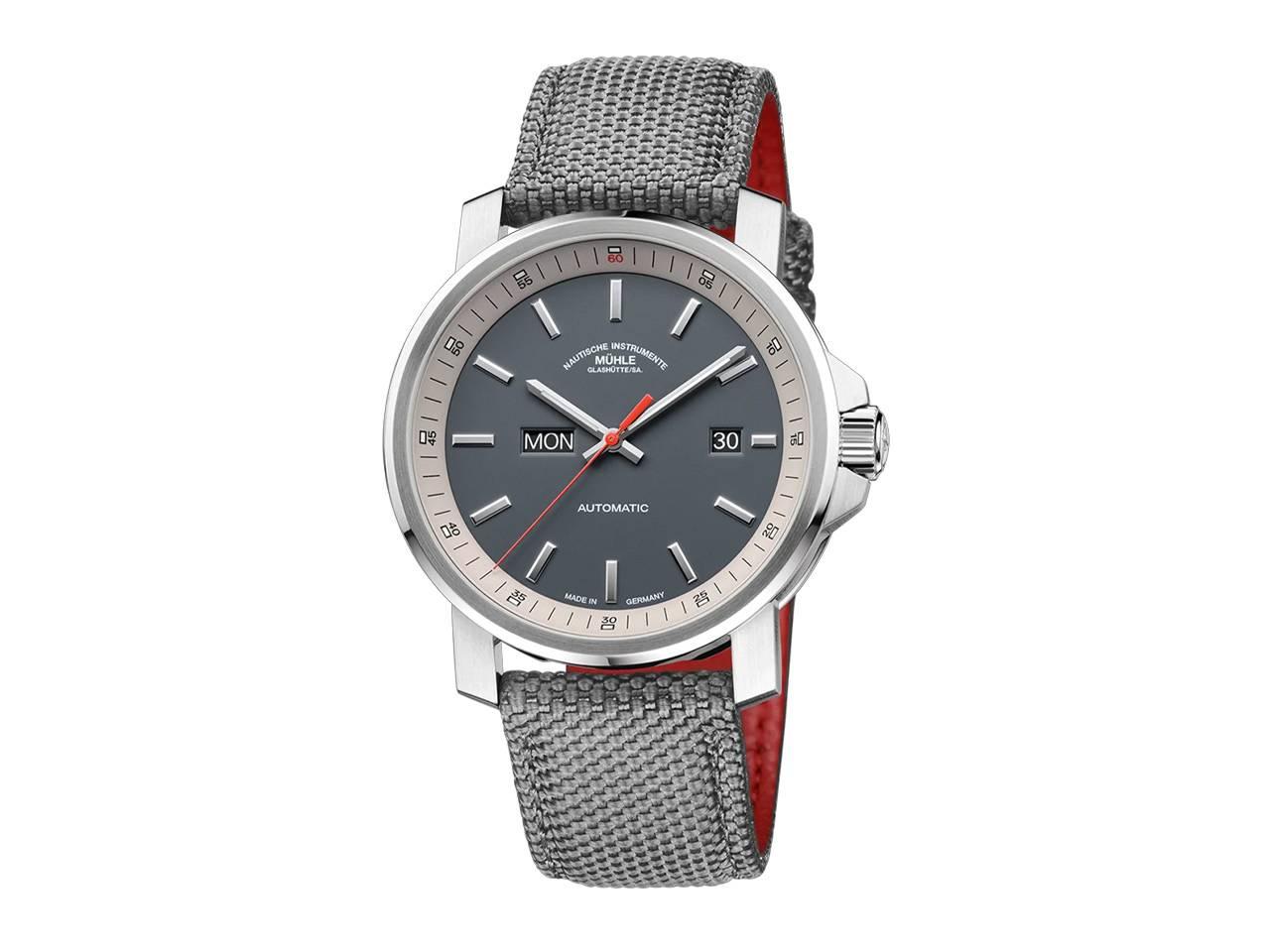 Mühle Glashütte 29er Tag/Datum Automatik Edelstahl 42,4mm titangraues Zifferblatt graues Canvasband