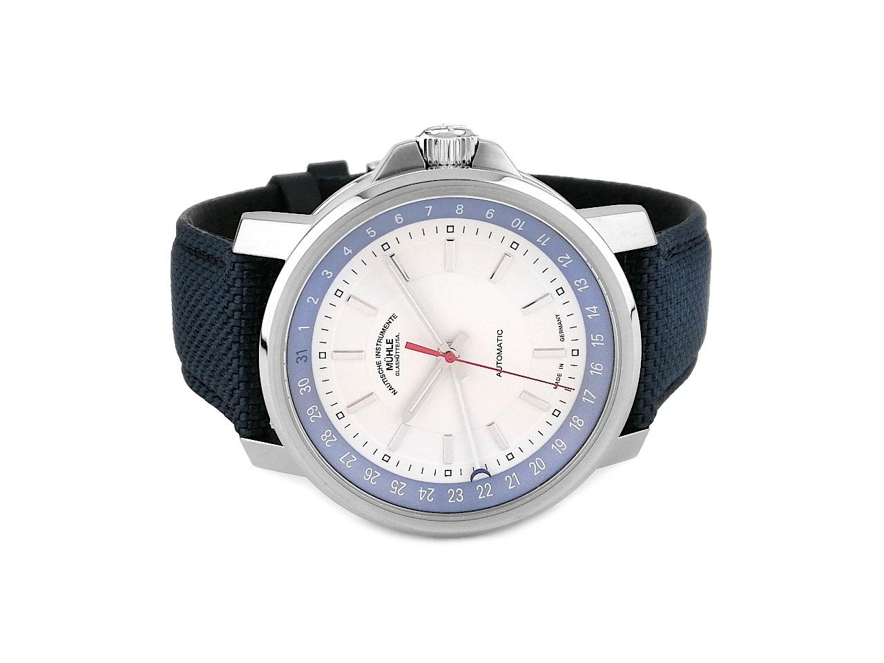 Mühle Glashütte 29er Big Zeigerdatum Automatik Edelstahl 42,4mm weißes Zifferblatt blaues Canvasband M1.25.32 CB Full Set mit Garantie Occasion Refurbished