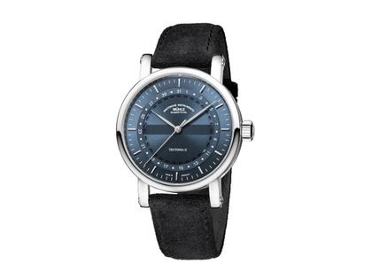 Mühle Glashütte Teutonia II Ringdatum Automatik Edelstahl 41mm blaues Zifferblatt schwarzes Textilband