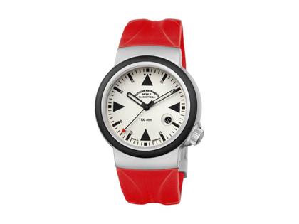 Automatik, Kaliber Sellita SW200, Verison Mühle mit patentierter Spechthalsregulierung, Edelstahlgehäuse, Durchmesser 42 mm, Höhe 13,5 mm, rotes Kautschukband mit Faltschließe, helles creme-weißes Zifferblatt - dank Super-LumiNova Beschichtung nachleuchtend, skelettierte Zeiger, 4 mm starkes entspiegeltes Saphirglas mit eingeschliffener Lupe, 100 bar wasserdicht, abgerundete Kautschuklünette, geliefert in Spezialbox