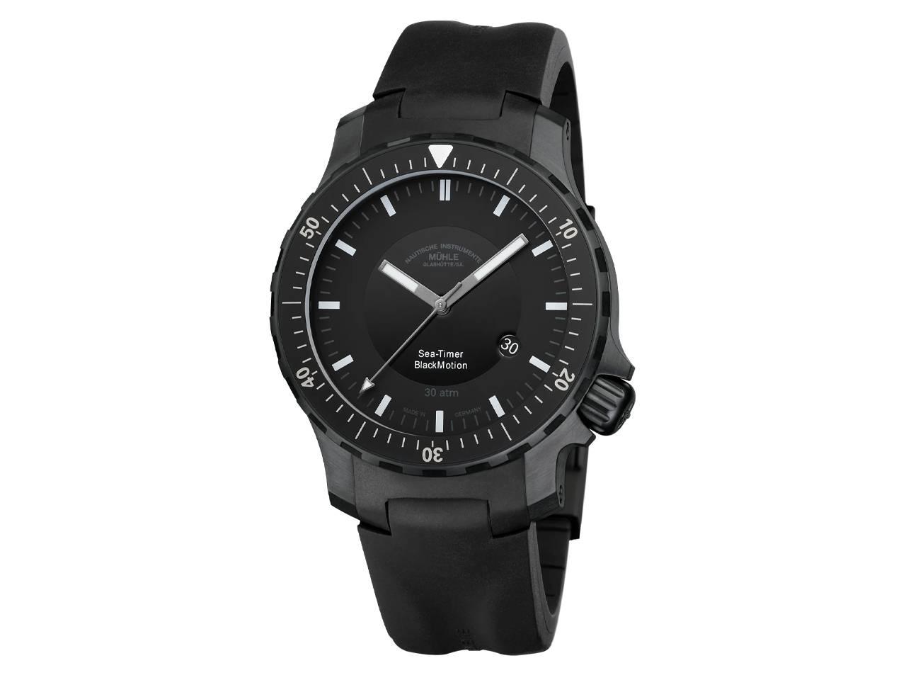 Mühle Glashütte Sea-Timer Blackmotion Automatik Edelstahl PVD-Schwarz 44mm schwarzes Zifferblatt schwarzes Kautschukband