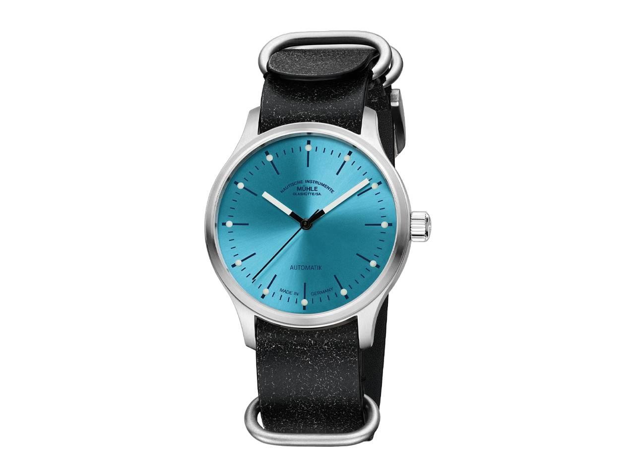 Mühle Glashütte Panova Türkisblau Automatik Edelstahl 40mm schwarzes Lederband
