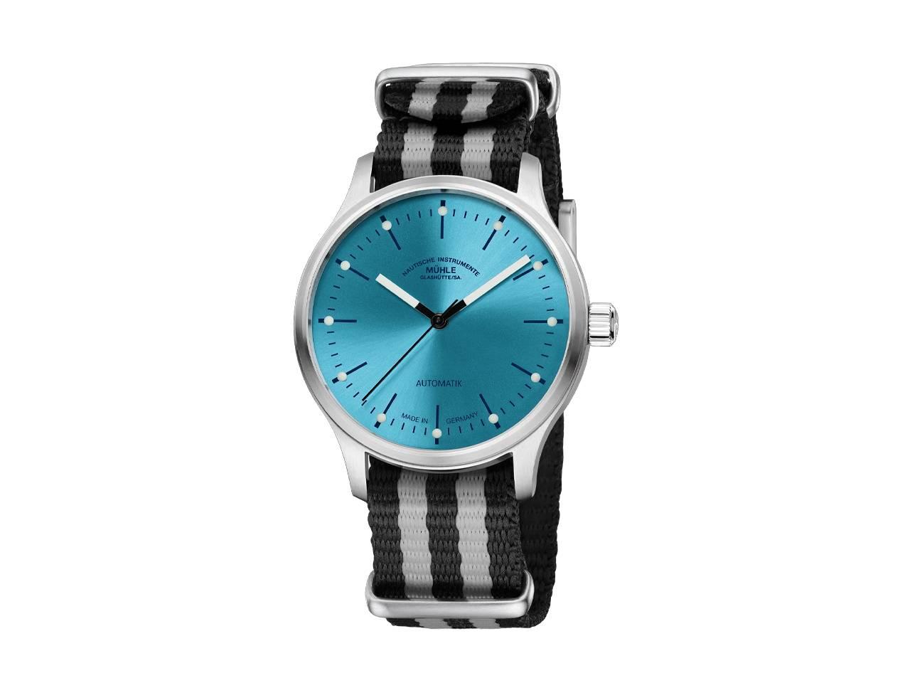Mühle Glashütte Panova Türkisblau Automatik Edelstahl 40mm schwarz-weißes Textilband
