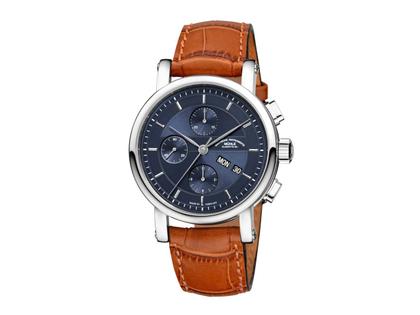 Mühle Glashütte Teutonia II Chronograph Automatik Edelstahl 42mm nachtblaues Zifferblatt braunes Lederband
