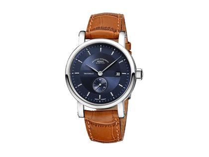 Mühle Glashütte Teutonia II Kleine Sekunde Automatik Edelstahl 41mm nachtblaues Zifferblatt braunes Lederband