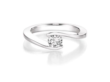 Damenring 585/- Weißgold, Brillant 0,51 ct TW (G) vs2, leicht geschwungene Ringschiene, raffinierte, außergewöhnliche Form eines Solitär-Rings