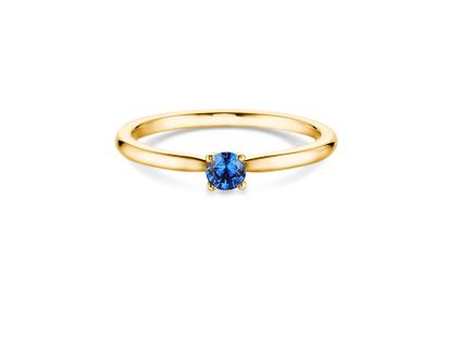 Solitär-Ring 585/- Gelbgold, runder blauer Saphir, Durchmesser 3,5 mm (ca. 0,20 ct) , 4-er Krappenfassung, feine Zungenschiene