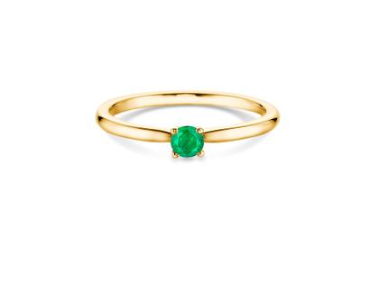 Damenring 585/- Gelbgold, runder Smaragd, grün, Durchmesser 3,5 mm (ca. 0,20 ct) , 4-er Krappenfassung, feine Zungenschiene