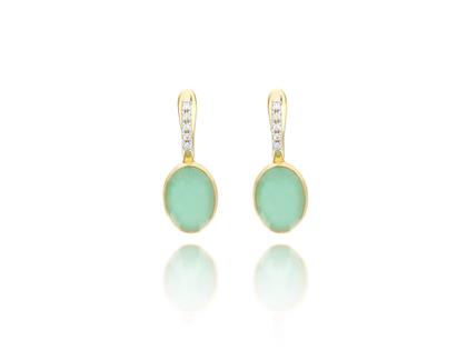 Ohrschmuck aus 750/- Gelbgold, mattiert, besetzt mit dem Lattementa Stein in der Größe Small - bestehend aus Bergkristall und grüner Jade - mit Brillanten