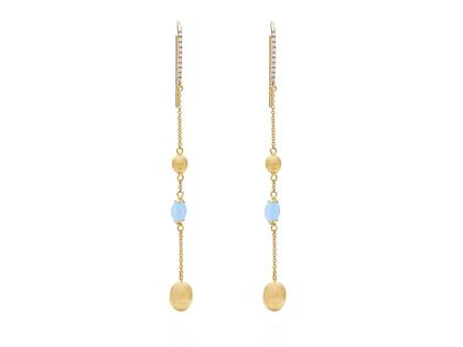 Nanis Dancing in the Rain Azure Ohrhänger Gelbgold Milky Aquamarin lang