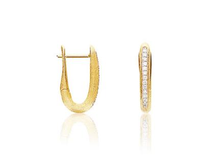 Creolen in 750/- Gelbgold, mattiert, mit Brillanten 0,12 ct TW (G) vsi, Klapp-Verschluss