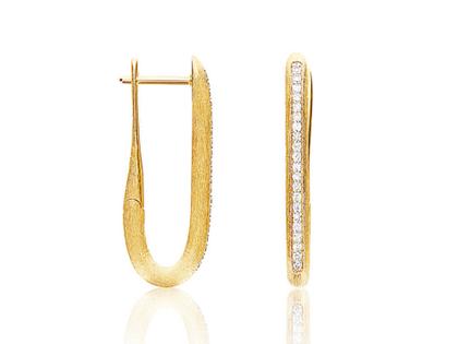 Creolen in 750/- Gelbgold, mattiert, mit Brillanten 0,20 ct TW (G) vsi, Klapp-Verschluss