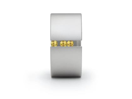 Edelstahl feinmatt, 11,5 mm breit, 2,5 mm hoch, mit drei beweglichen Kugeln aus gelben Koruns