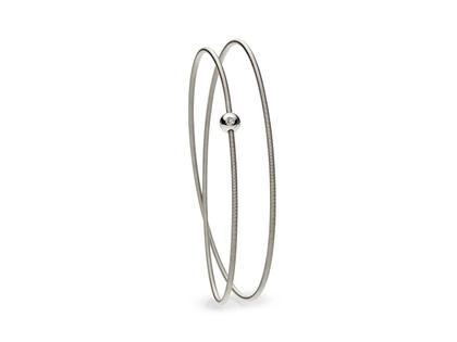 die berühmte Niessing Schnur als Armschmuck, aus 750/- Weißgold (Fine Gray), Kugel, 5 mm, poliert mit 1 Brillant 0,02 ct TW vsi, 1,5 mm breit, zweifach gewickelt.