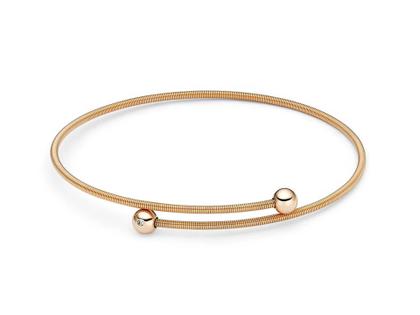 die berühmte Niessing Schnur als Armreif, aus 750/- Roségold in der Farbe Fine Rose mit einer Brillant- und End-Kugel, 1 Brillant 0,01 ct TW (F) vsi, 5 mm Kugel-Durchmesser