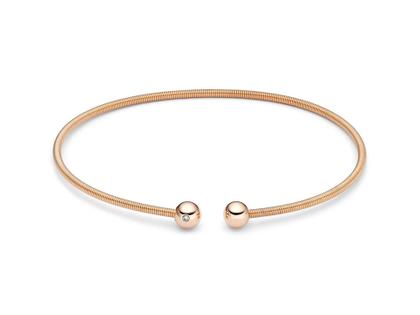die berühmte Niessing Schnur als Armreif, aus 750/- Rotgold mit einer Brillant- und End-Kugel, 1 Brillant 0,01 ct TW (F) vsi, 5 mm Kugel-Durchmesser