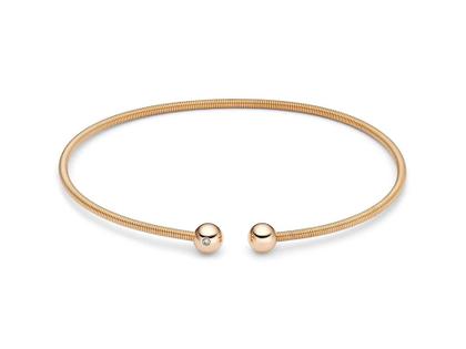 die berühmte Niessing Schnur als Armreif, aus 750/- Roségold in der Farbe Fine Rose mit einer Brillant- und End-Kugel, 1 Brillant 0,01 ct TW (F) vsi, 5 mm Kugel-Durchmesser