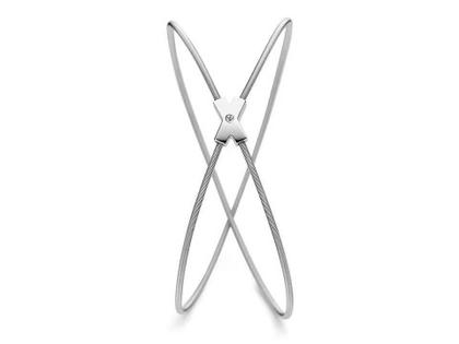 die berühmte Niessing Schnur als Armreif, aus 950/- Platin mit X-Schmuckelement - besetzt mit 1 Brillant 0,02 ct TW (F) vsi, 57,5 mm Innendurchmesser, limitierte Edition