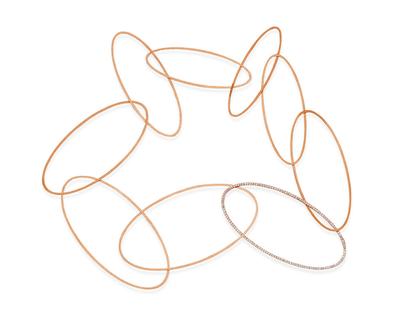 Bogenkette aus 750/- Rotgold Classic Red, Textur Nature, Seiten poliert, 701,0 mm lang, Element voll gefasst mit 138 Brillanten je 0,01 ct TW(G) vsi2
