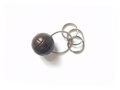 Schlüsselanhänger "Fußball" - passend zur WM oder EM - aus schwarzem Lammleder, handgenäht, 23,0 mm im Durchmesser, nur solange der Vorrat reicht