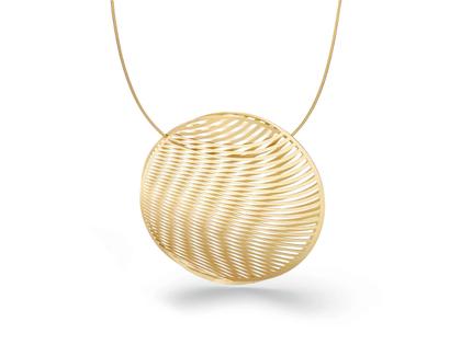 dreidimensionaler Anhänger 750/- Gold Classic Yellow (Gelbgold), feine Lamellen, feinmatt (Velvet), Kanten poliert, 50 mm Durchmesser