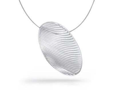 dreidimensionaler Anhänger 950/- Platin, feine Lamellen, feinmatt (Velvet), Kanten poliert, 70 mm lang