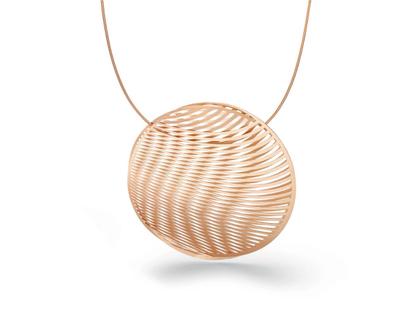 dreidimensionaler Anhänger 750/- Gold Classic Red (Rotgold), feine Lamellen, feinmatt (Velvet), Kanten poliert, 50 mm Durchmesser
