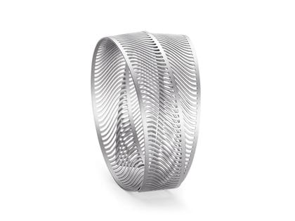 dreidimensionaler Armreif aus 950/- Platin, feine Lamellen, feinmatt (Velvet), Kanten poliert, 50 mm Durchmesser