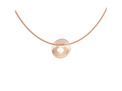 dreidimensionaler Anhänger aus 750/- Rotgold in der Farbe Classic Red, feinmatt (Velvet), feine Lamellen mit polierten Kanten, Durchmesser 20,0 mm