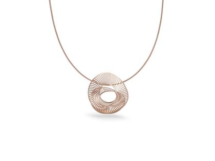 Anhänger gewickelt aus 750/- Weißgold Rosewood, außen feinmatt, Kanten poliert, 27,5 mm