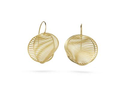 dreidimensionaler Ohrschmuck 750/- Gold Classic Yellow (Gelbgold), feine Lamellen, feinmatt (Velvet), Kanten poliert, 30 mm Durchmesser