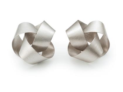 Ohrstecker, Bänder wie Papierstreifen, 8mm breit, 950/- Platin, vliesmatt, Kanten poliert