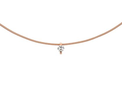 750/- Rotgold (Classic Red), außen feinmatt (Velvet), innen und Kanten poliert (Gloss), 1 Brillant 0,23 ct TW(G) vsi2, Anhänger 6,8 mm, der Klassiker von Niessing nun auch als Halsschmuck.