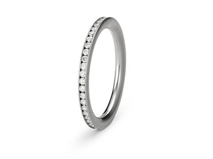 950/- Platin, außen seidenmatt (Satin), innen und Kanten poliert (Gloss), 52 Brillanten 0,26ct TW(G) vs2, 1,8 mm breit, 2,2 mm hoch