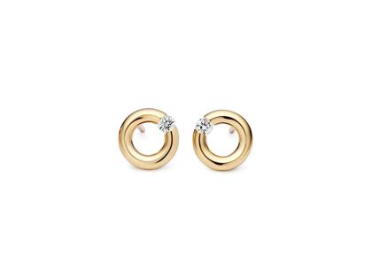 Ohrstecker aus 750/- Gelbgold poliert, mit 2 Brillanten 0,10 ct TW(G) vsi2, Außendurchmesser 8,0 mm, inkl. passender Niessing Stopper.