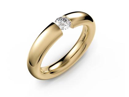 Spannring-System "Oval", 750/- Gelbgold poliert mit 1 Brillant 0,25 ct TW (F) vsi1, 4,5 mm breit, 3,1 mm hoch