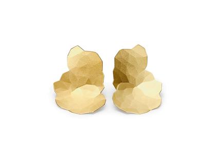 Ohrstecker, flächiges Schmuckelement, 750/- Gelbgold (Classic Yellow), ca. 33 mm lang, handgeschmiedet, dreidimensional gewellt, Oberfläche Velvet (feinmatt)