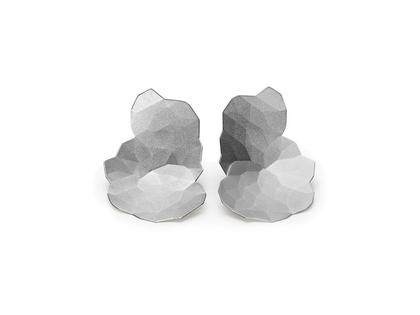 Ohrstecker, flächiges Schmuckelement, 950/- Platin (Platinum), ca. 33 mm lang, handgeschmiedet, dreidimensional gewellt, Oberfläche Velvet (feinmatt)